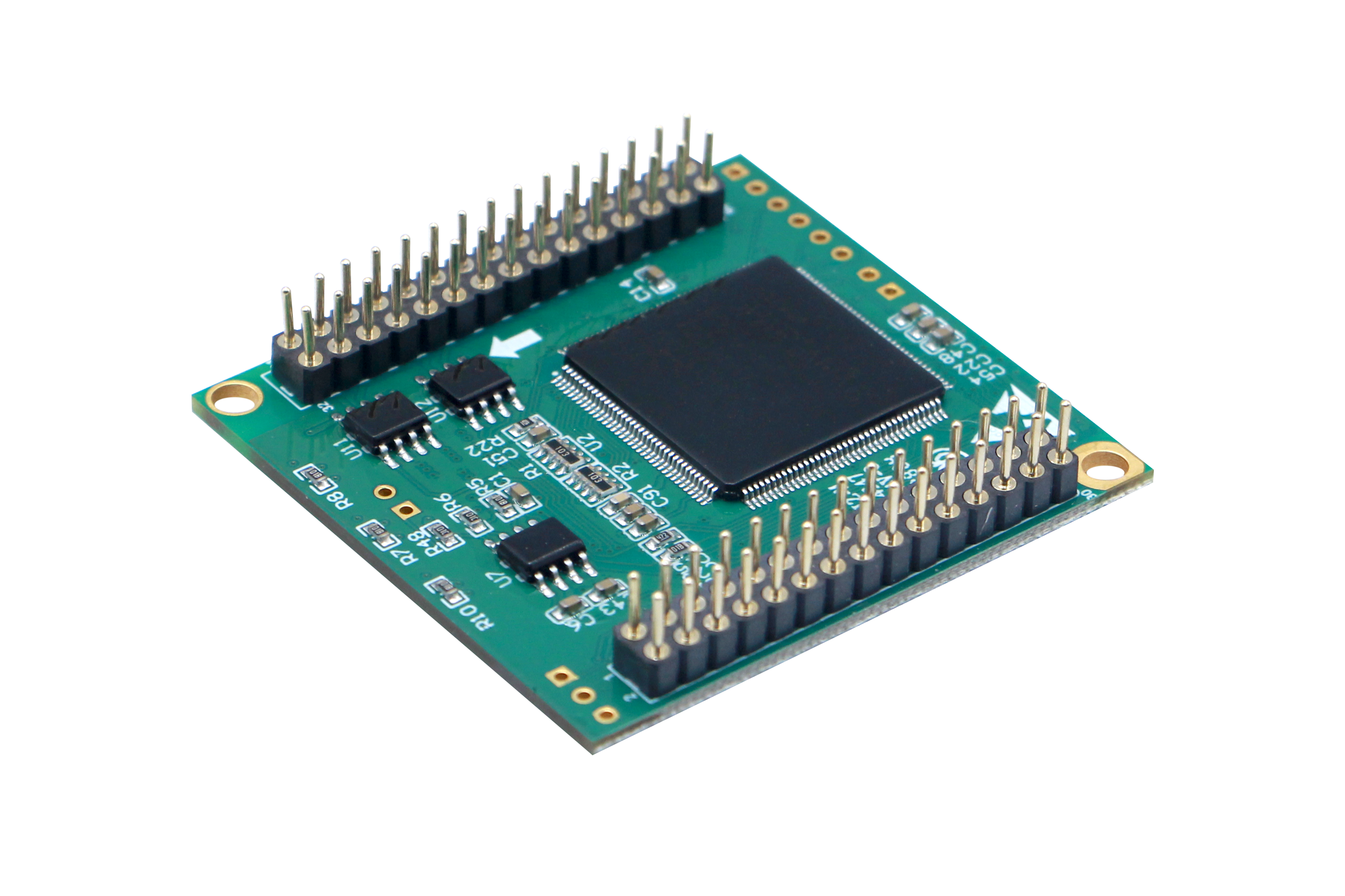 用户使用的引脚为2对标准2.54mm间距的30PIN圆孔排针(针直径0.7mm),分布在板子两侧如图2.1所示。
